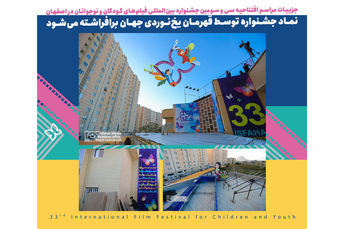 نماد جشنواره فیلمهای کودکان و نوجوانان توسط قهرمان یخنوردی جهان برافراشته میشود