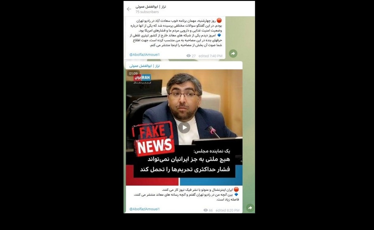 به گزارش جماران؛ ابوالفضل عموئی سخنگوی کمیسیون امنیت ملی و سیاست خارجی مجلس شورای اسلامی در کانال تلگرامی خود نوشت: «ایران اینترنشنال و منوتو با نشر فیک نیوز کار می کنند. بین آنچه من در رادیو تهران گفتم و آنچه رسانه های معاند منتشر می کنند، فاصله زیاد است.»