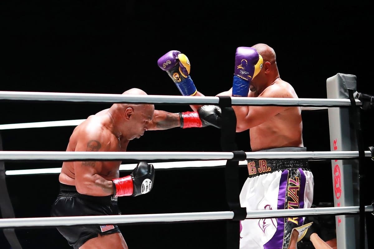 مایک تایسون 54 ساله با روی جونز جونیور 51 ساله، نایب قهرمان المپیک 1988 سئول با قوانین خاصی روی رینگ رفتند تا در یک مبارزه نمایشی شرکت کنند.
