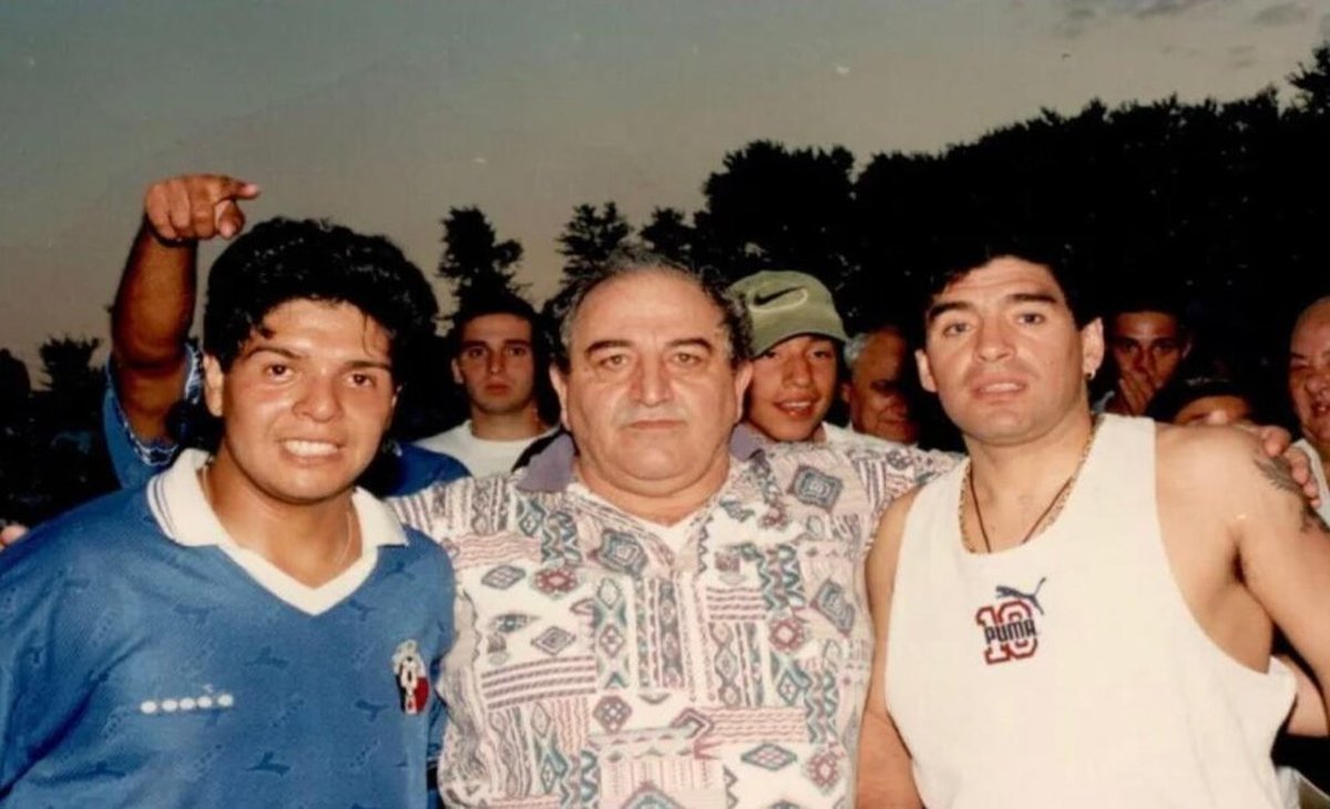 در این تصویر مارادونا به همراه برادرش و فیکولا، مالک تیم Toronto Italia حاضر هستند.