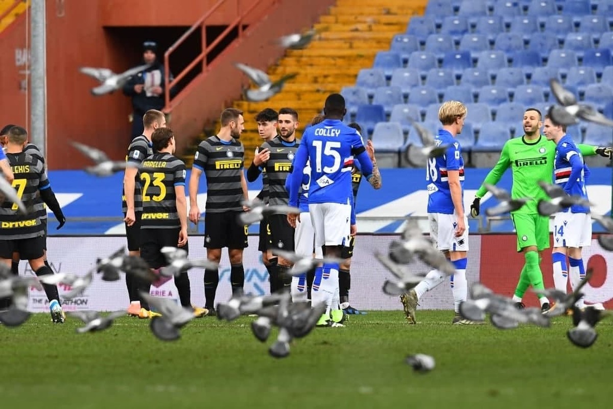 در جریان دیدار امروز سمپدوریا و اینتر اتفاق جالبی رخ داد و بازیکنان با تعداد زیادی پرنده در زمین مسابقه رو به رو شدند که این اتفاق صحنه های جالبی به وجود آورد.