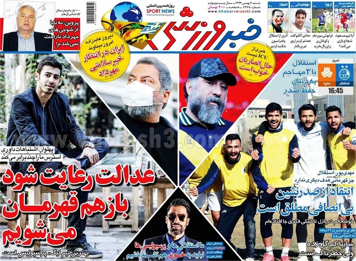 روزنامه های ورزشی ۴ بهمن ۱۳۹۹