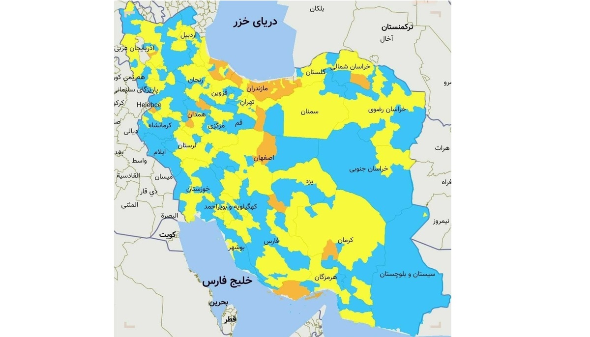 اسامی استان ها و شهرستان های در وضعیت نارنجی و زرد / جمعه ۱۷ بهمن ۹۹