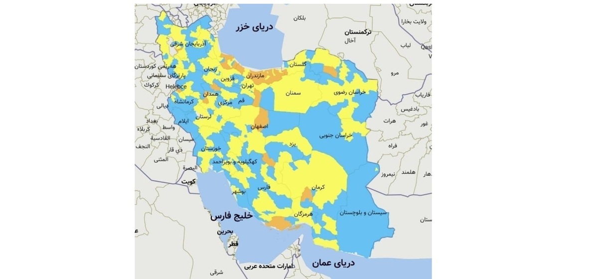 اسامی استان ها و شهرستان های در وضعیت نارنجی و زرد / شنبه ۱۸ بهمن ۹۹