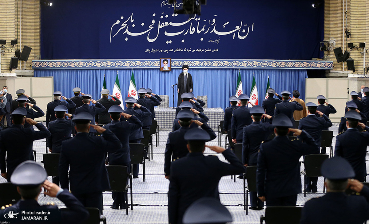 ترجمه حدیث نصب شده در حسینیه امام خمینی (ره) در دیدار امروز اعضای نیروی هوایی ارتش با رهبر انقلاب بدین شرح است: «إنَّ الْعَدُوَّ رُبَّما قارَبَ لِیَتَغَفَّلَ، فَخُذْ بِالْحَزْمِ. گاهی دشمن نزدیک می شود تا غافلگیر کند، پس دوراندیش باش. نهج البلاغه، نامه ۵۳»