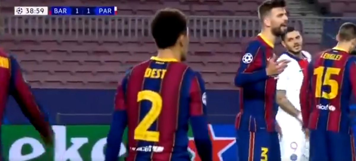 دقیقه 38 بازی و در حالی که کار با تساوی 1-1 دنبال می شد، دوربین های تلویزیونی تصاویر عجیبی را شکار کردند. بارسا تحت فشار قرار گرفته بود و استرس شدیدی را تحمل می کرد. آنتوان گریزمان و سرجینیو دِست در یک صحنه با وجود تعقیب کیلیان امباپه نتوانستند او را متوقف کنند و توپ راهی کرنر شد. در واقع گریزمان در این صحنه به خوبی از سرجینیو حمایت نکرد تا او محبور شود توپ را به کرنر بفرستد. همین قضیه باعث خشم پیکه از ستاره فرانسوی شد.