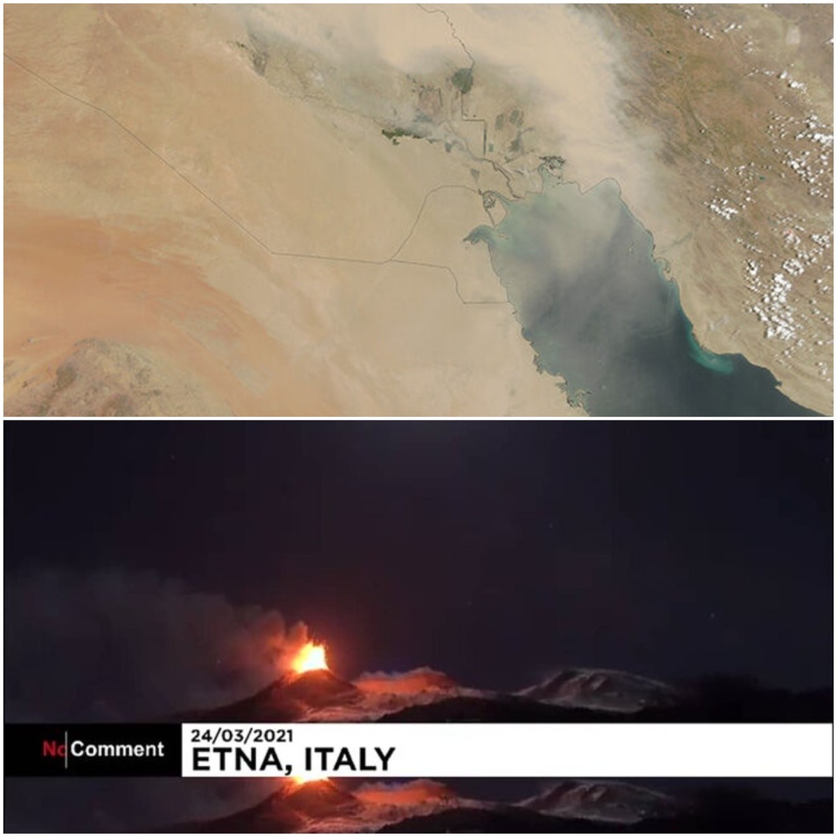 اما در مقابل تارنمای اسکای نیوز عربی در این باره نوشت: عراق در انتظار ورود ابر گاز سمی دی اکسید گوگرد است که از آتشفشان آتنا در جزیره سیسیل ایتالیا ساطع می شود.