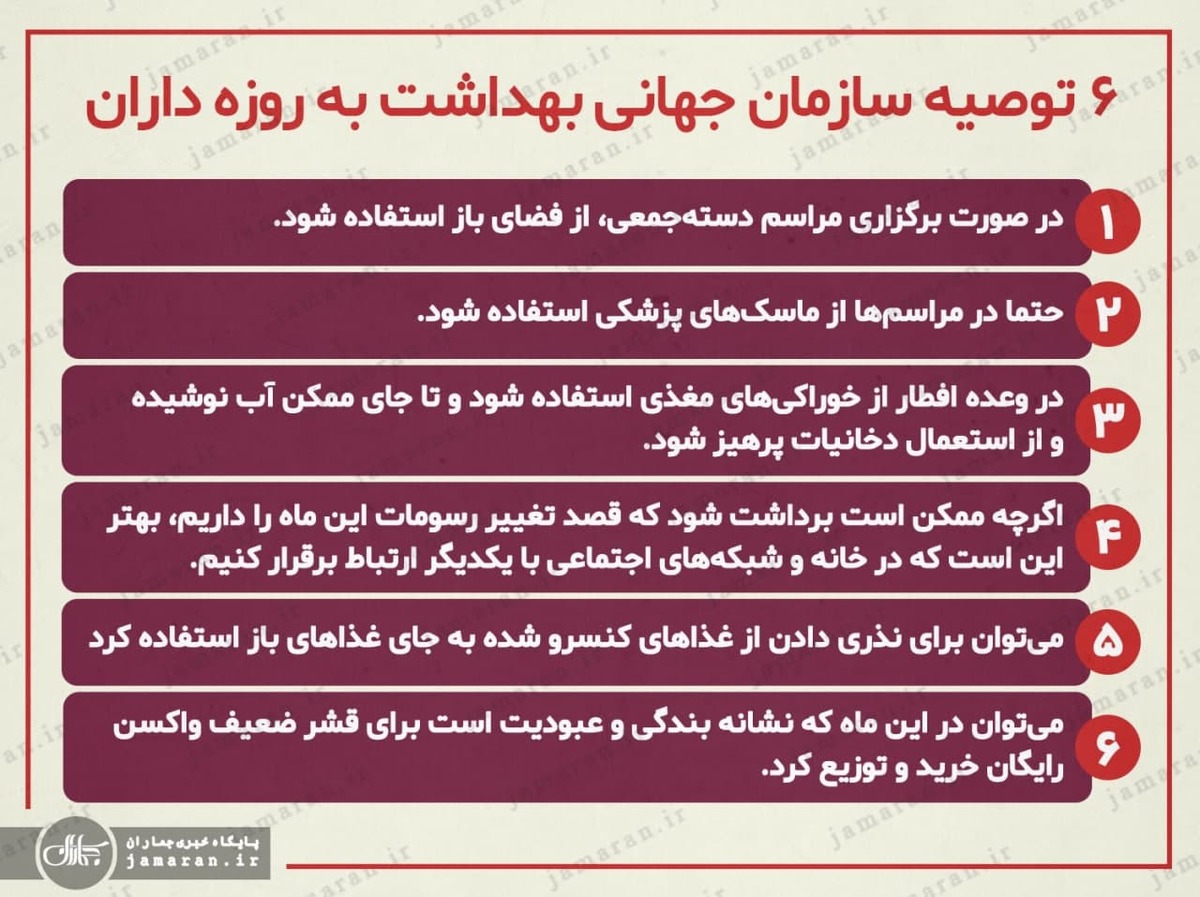 ۶ توصیه سازمان جهانی بهداشت به روزه داران
