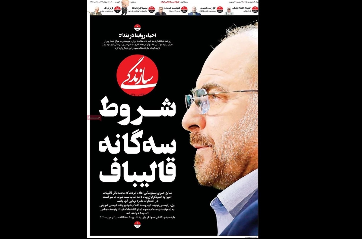 روزنامه سازندگی در تیتر یک خود، از شروط محمدباقر قالیباف برای پذیرفتن نامزدی اصولگرایان در انتخابات ریاست جمهوری خبر داده است.