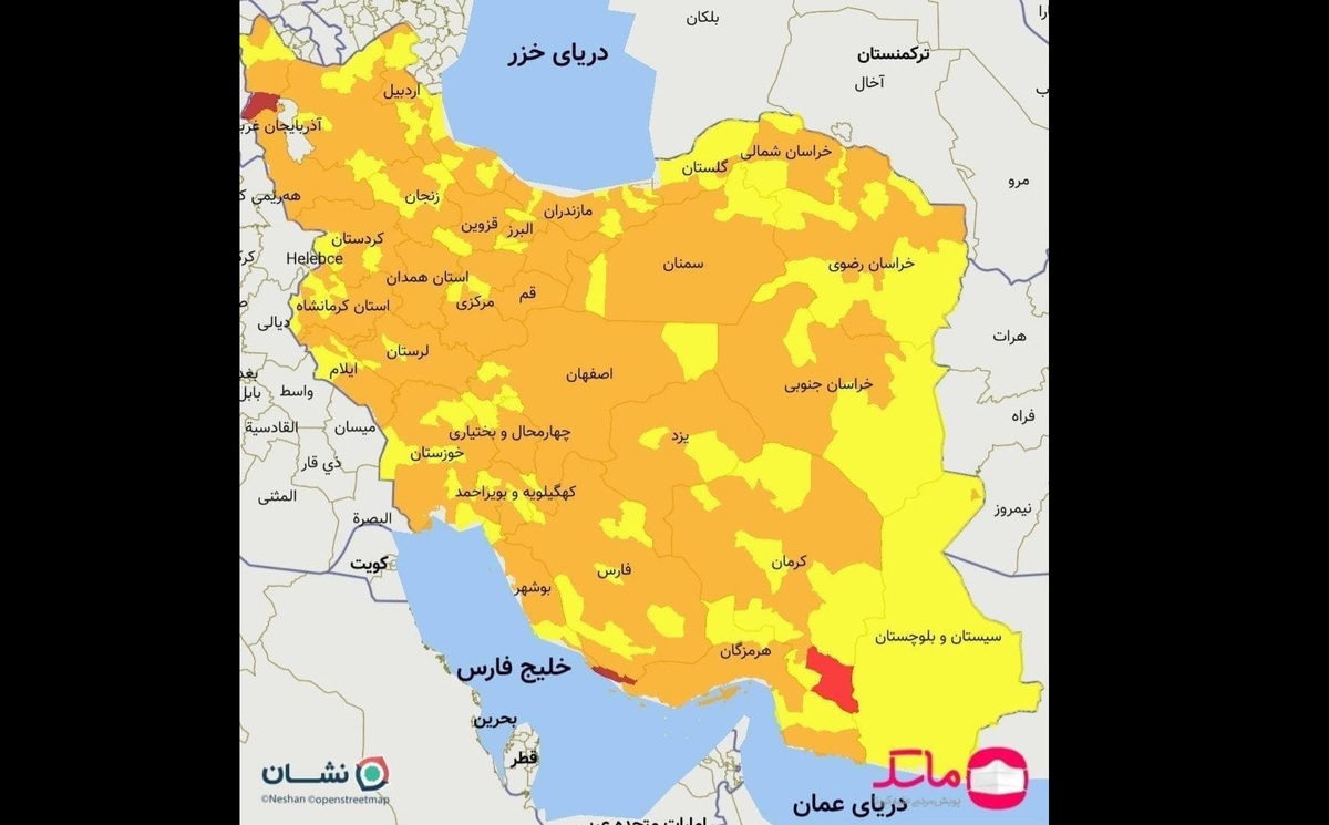 اسامی استان ها و شهرستان های در وضعیت قرمز و نارنجی / یکشنبه ۲۶ اردیبهشت ۱۴۰۰