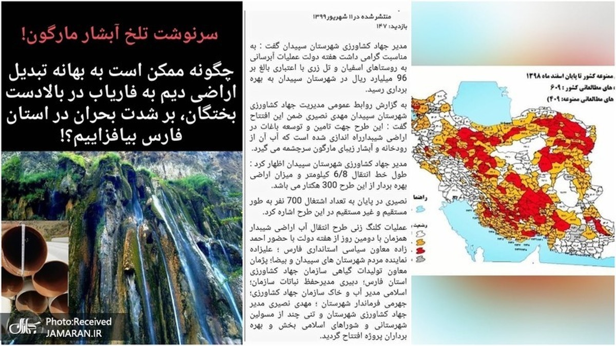 ۴. حتی اسراییل با فلسطینیان این کار را نکرد که مدیران جهاد کشاورزی شهرستان سپیدان میخواهند با هماستانیهای خود در پایاب رودخانه مارگون و کُر انجام دهند!