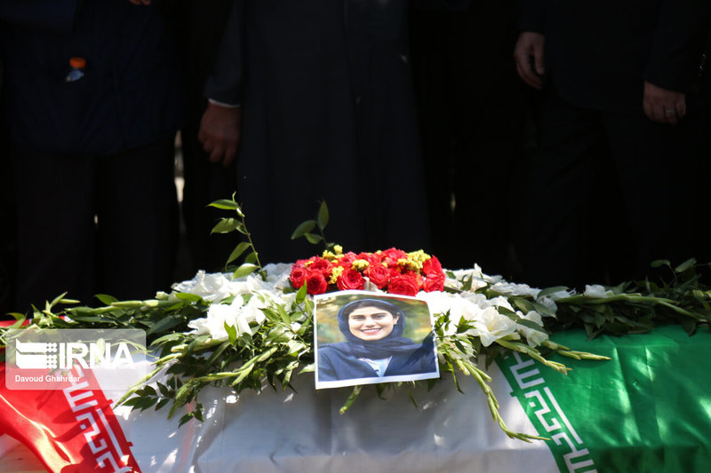 مراسم تشییع پیکر مهشاد کریمی و ریحانه یاسینی خبرنگارهای درگذشته در حادثه واژگونی اتوبوس در ارومیه در قطعه نامآوران بهشت زهرا برگزار شد