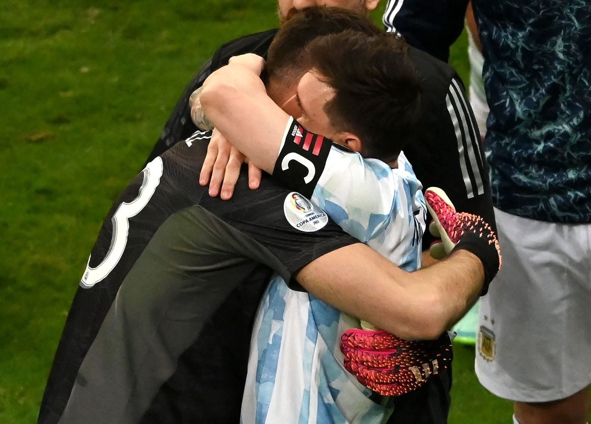 بعد از صعود آرژانتین به فینال کوپا آمریکا ۲۰۲۱ مسی امیلیانو را آغوش کشید و لحظاتی عاطفی شکل گرفت و در نهایت اشک کاپیتان بارسلونا درآمد.