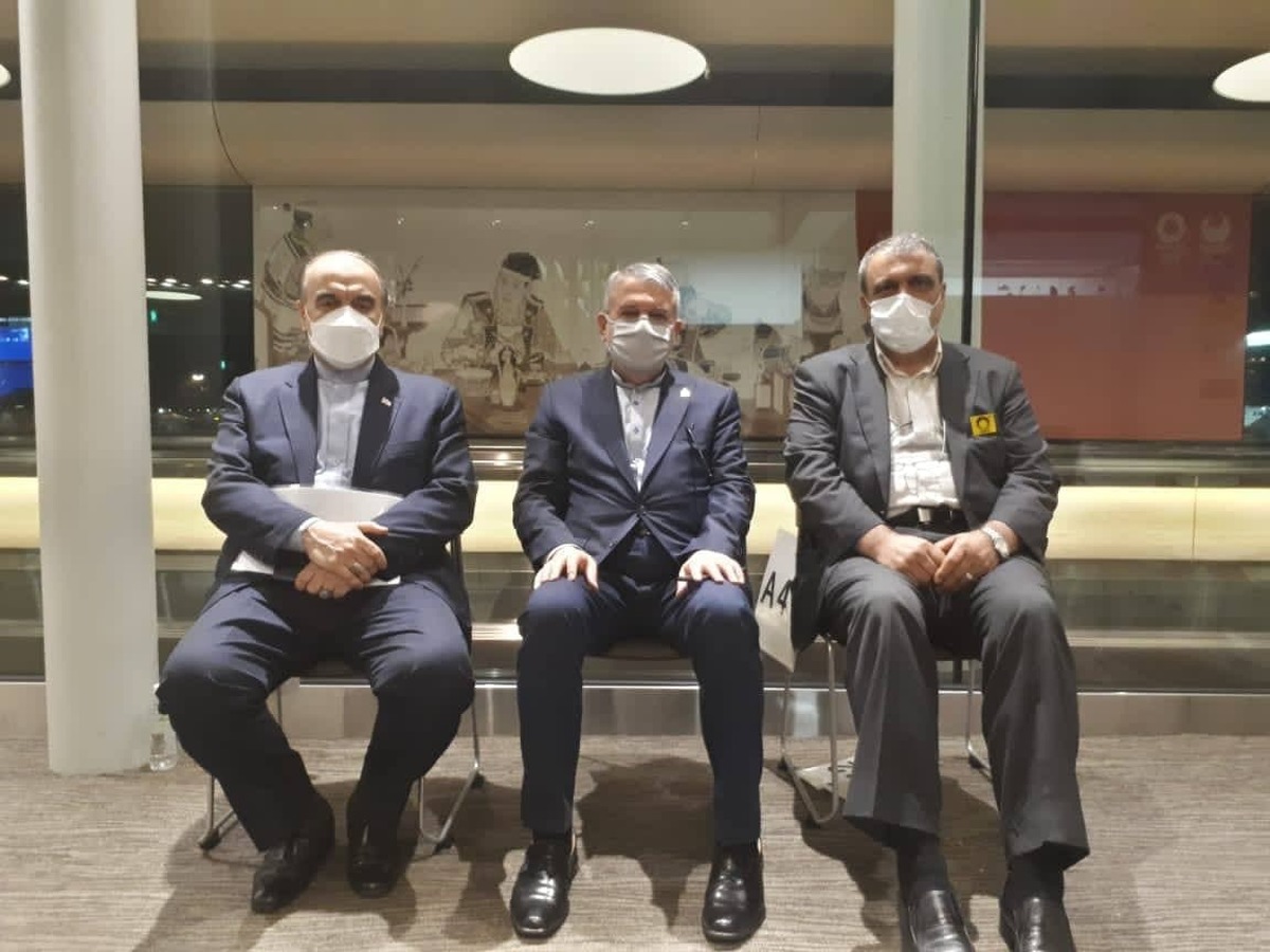 رحمانی موحد، سفیر ایران در ژاپن و نصرالله سجادی، سرپرست کاروان به استقبال وزیر ورزش و رئیس کمیته ملی المپیک آمدند.