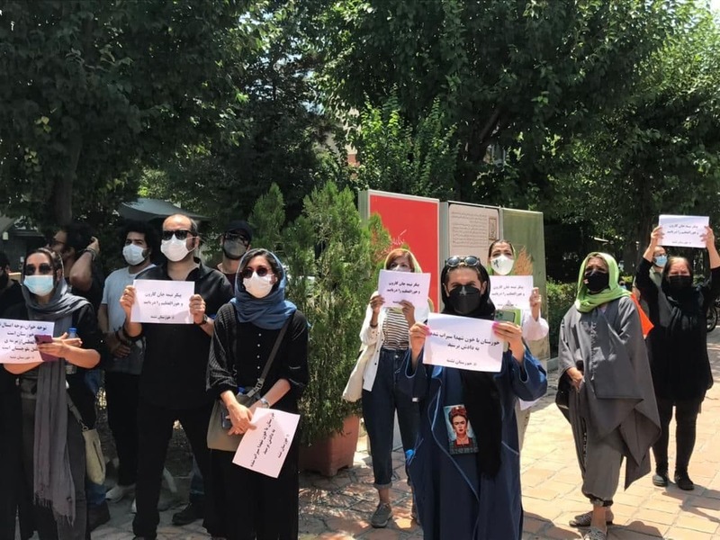گروهی از سینماگران در شهر تهران برای همدردی با مردم جنوب کشور که با مشکل بیآبی مواجه هستند، در پارک هنرمندان گرد هم آمدند.