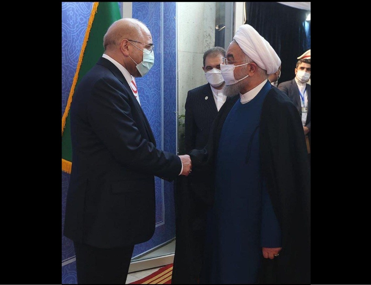 در حالی که محمدباقر قالیباف رئیس مجلس بر خلاف پروتکلهای بهداشتی مقابله با کرونا، با اکثر میهمانان مراسم تحلیف دست میداد، حسن روحانی حاضر به این کار نشد و از روی عبا با قالیباف مشتهایشان را به هم زدند.