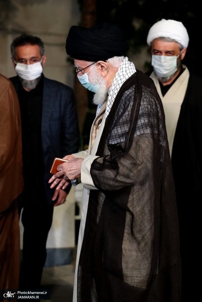 اقامه نماز رهبر معظم انقلاب بر پیکر آیتالله حسنزاده آملی