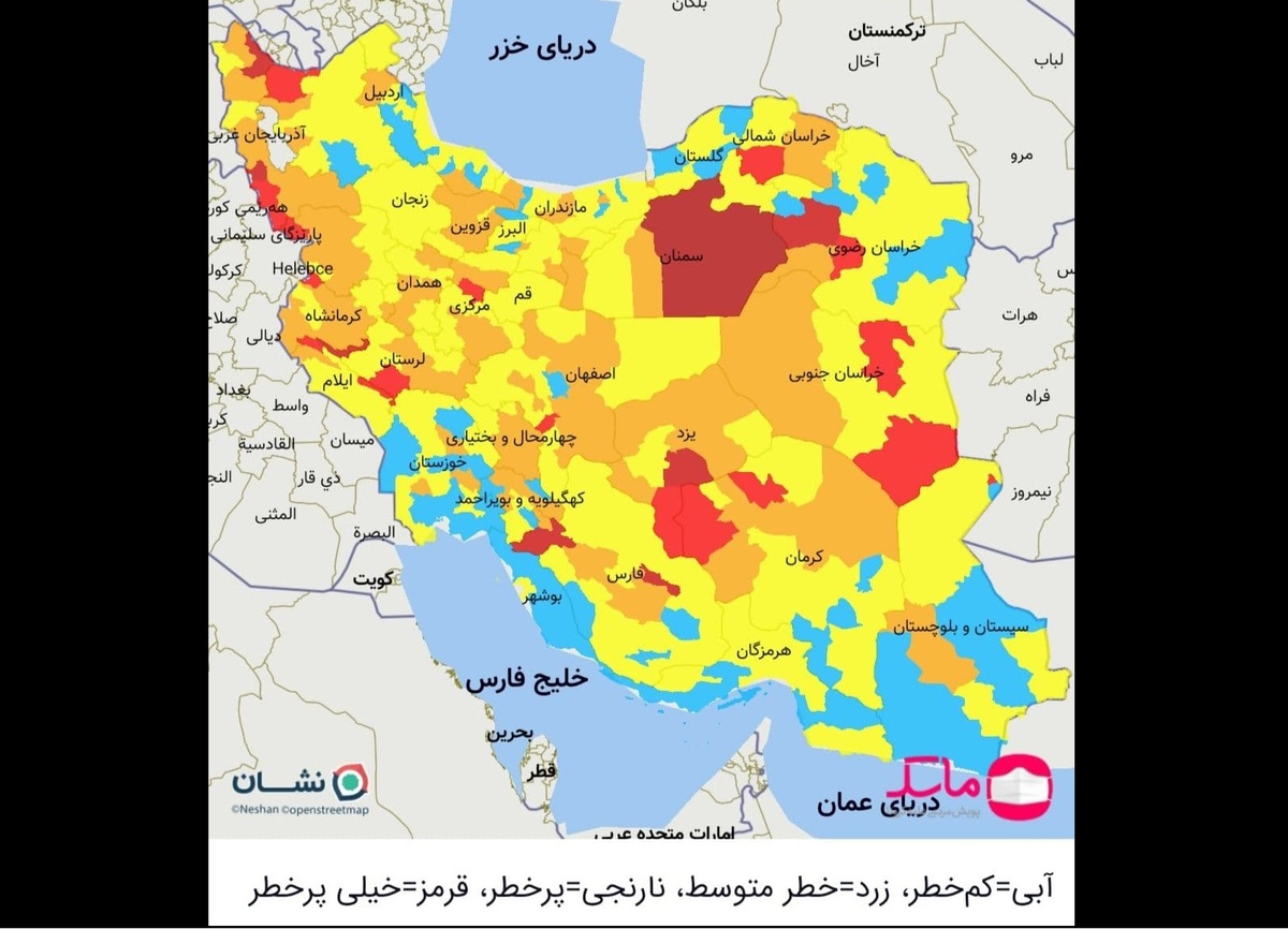 تعداد شهرهای قرمز کرونایی به ۳۳ رسید/ وضعیت تهران، کرج، تبریز و زنجان زرد شد + نقشه و اسامی شهرهای قرمز