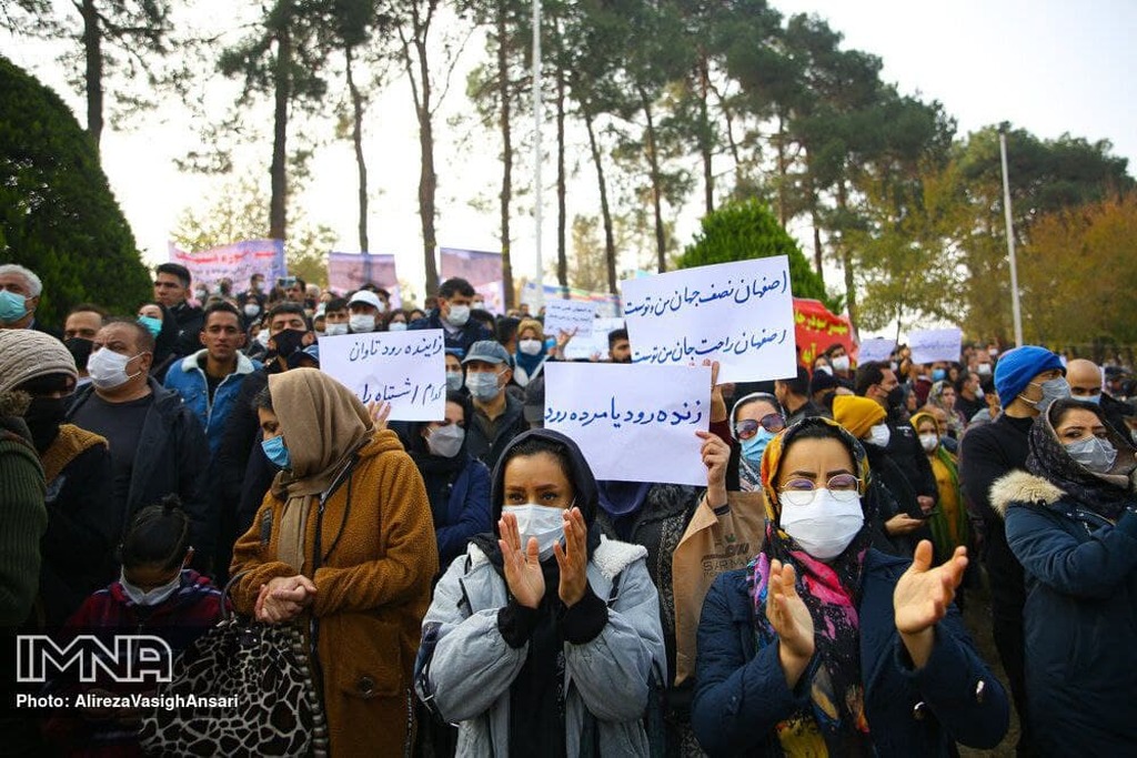 تعدادی از مردم و کشاورزان اصفهان، امروز(جمعه-۲۸ آبان) در بستر خشک روزخانه زاینده رود در کنار پل خواجو جمع شدند و خواهان تخصیص آب برای کشت پاییزه و جاری شدن دائمی این رودخانه شدند و از مسئولان درخواست کردند هر چه سریع تر مشکلات آب استان اصفهان را حل کنند.