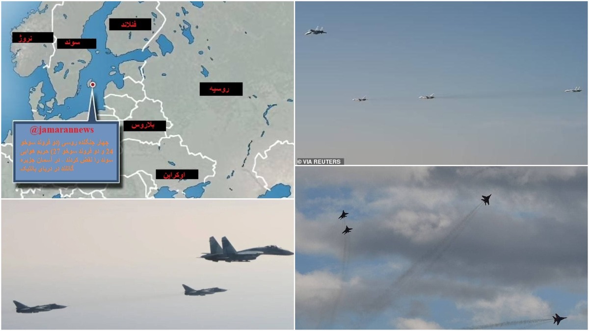 چهار جنگنده روسی (دو فروند سوخو ۲۴ و دو فروند سوخو ۲۷) حریم هوایی سوئد را نقض کردند - در آسمان جزیره گاتلند در دریای بالتیک.