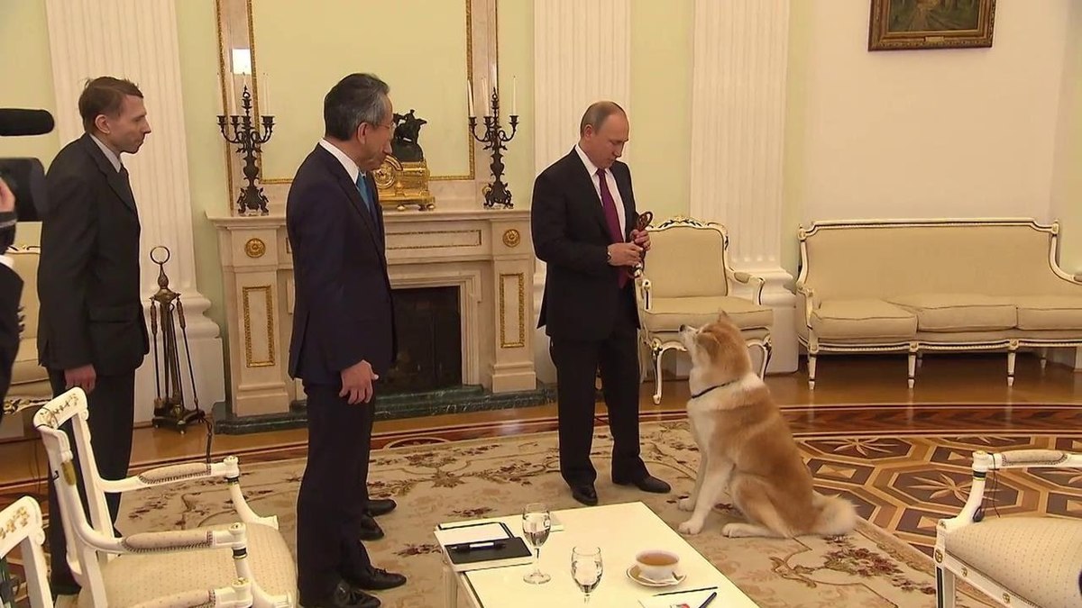 سگی که پوتین را همراهی می کند چهار سال پیش از آن دیدار توسط ژاپنی ها به او هدیه داده شده بود. روسیه در آن زمان به ژاپن که دچار فاجعه اتمی شده بود کمک کرد و ژاپنی ها هم که از علاقه زیاد پوتین به سگ ها مطلع بودند سگی را به او هدیه کردند.