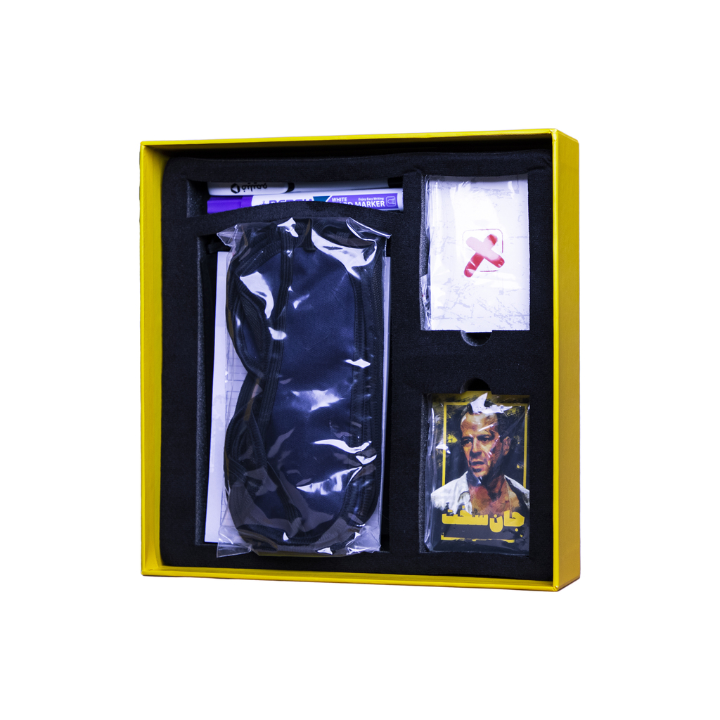 محتویات جعبه این بازی شامل « کارت شخصیتها(۲۵عدد)، کارت گرداننده (۱۰عدد)، کارت شخصیتهای مافیا فیلیمو (۴عدد)، کارت سفید (۱عدد)، کارت حرکت آخر (۶عدد)، کارت قرعه مرگ( ۲عدد)، دفترچه راهنما، چشم بند(۱۲ عدد) کیسه حمل کارتهای بازی، دفترچه گرداننده، خودکار و ماژیک است.