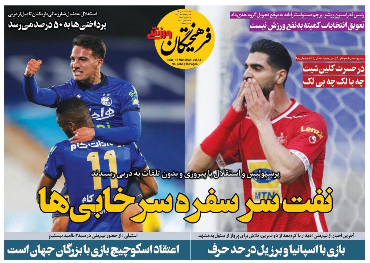 روزنامه های ورزشی شنبه ۲۱ اسفند ۱۴۰۰