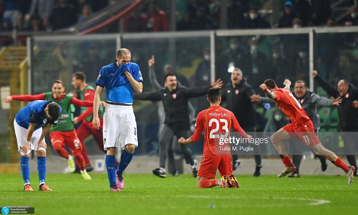جی پلاس، بامداد امروز در چارجوب اولین بازی مرحله پلیآف راهیابی به جامجهانی ۲۰۲۲ قطر، تیم ملی ایتالیا در کمال ناباوری مقابل مقدونیه شمالی شکست خورد تا مثل جام جهانی گذشته، باز هم این رقابت را از دست بدهد.