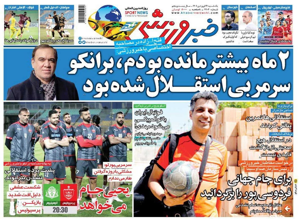 روزنامههای ورزشی یکشنبه ۲۱ فروردین ۱۴۰۱
