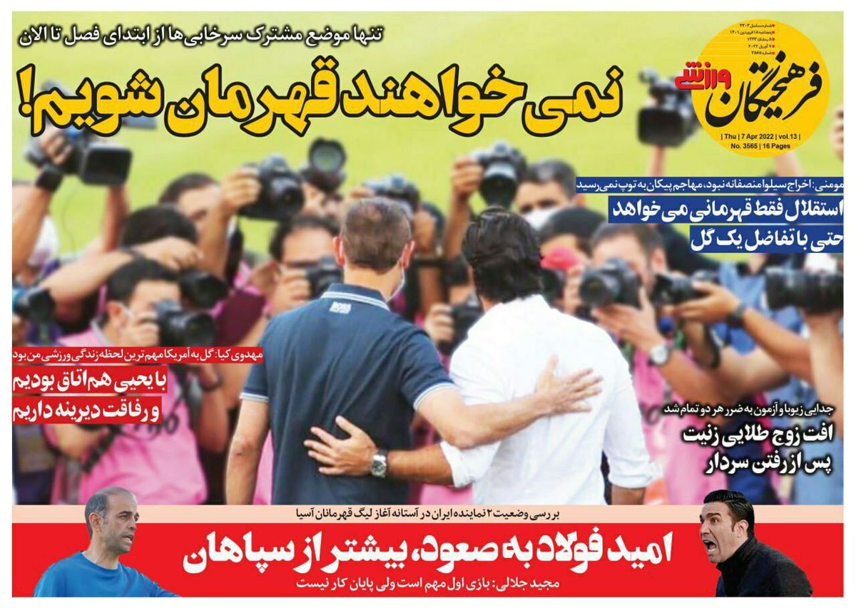 روزنامه های ورزشی پنجشنبه ۱۸ فروردین ۱۴۰۱