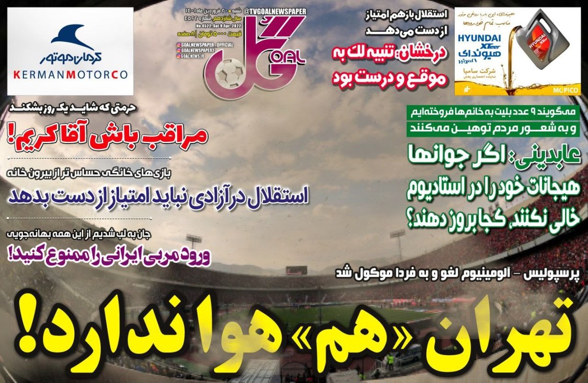 روزنامههای ورزشی شنبه ۲۰ فروردین ۱۴۰۱