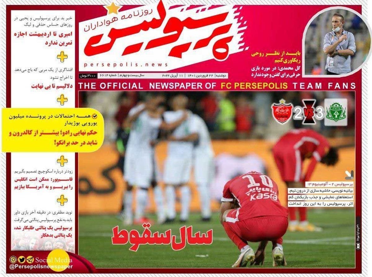 نیم صفحه روزنامه های ورزشی امروز (۲۲ فروردین) در ادامه آمده است: