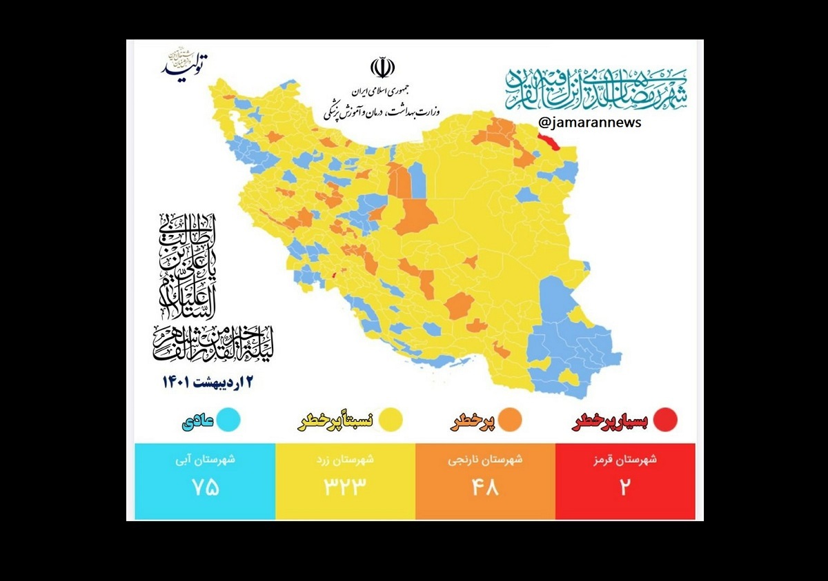 لیست کامل رنگبندی کرونایی شهرهای کشور، ۲ اردیبهشت ۱۴۰۱