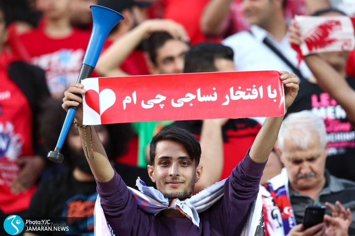 هواداران نساجی از مواد دودزا به رنگ قرمز برای حمایت از تیم خود پس از گل عبدی استفاده کردند.