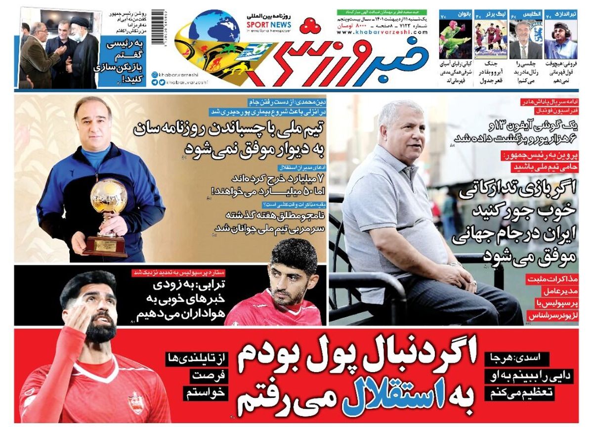روزنامههای ورزشی یکشنبه ۱۱ اردیبهشت ۱۴۰۱