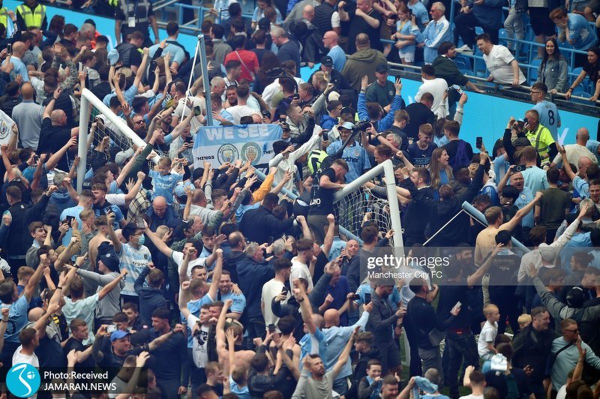 بعد از پیروزی تیم منچسترسیتی مقابل استون ویلا که به قهرمانی این تیم منجر شد طرفداران تیم سیتی به زمین هجوم آوردند تا جشن قهرمانی به پا کنند.