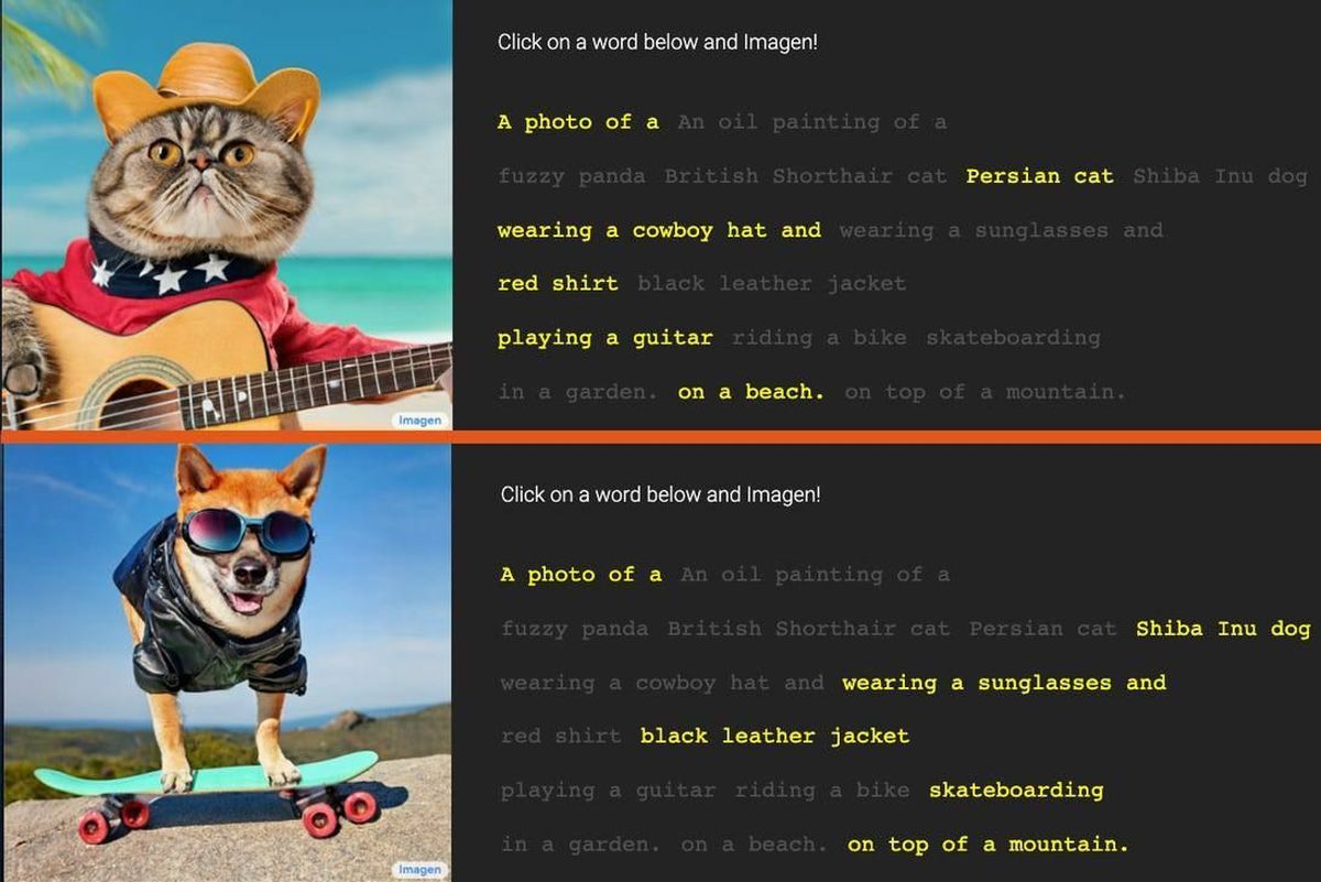 گوگل چندین نمونه از پیامهای متنی و تصاویر حاصل از هوش مصنوعی را در وب سایت Imagen خود به اشتراک گذاشت. مدلهای یادگیری متن به تصویر، قدرت سیستمهای یادگیری ماشینی را نشان میدهند. در این حالت، Imagen نیاز به دانستن نحوه استفاده از نرم افزارهای تخصصی مانند فتوشاپ برای ایجاد تصاویر انتزاعی را از بین میبرد.