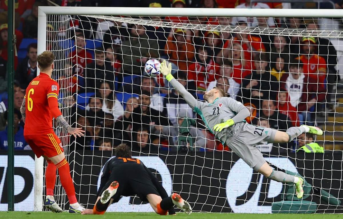 هلند که در کاردیف مهمان ولز بود با نتیجه ۲-۱ برنده شد. گلها نارنجیها را در این دیدار کوپمِینرس و وخورست در دقایق ۵۰ و ۴+۹۰ به ثمر رساندند. گل ولز را هم نورینگتون دیویس در دقیقه ۲+۹۰ زد. هلند با این برد ۶ امتیازی شد و در صدر جدول گروه جای گرفت.