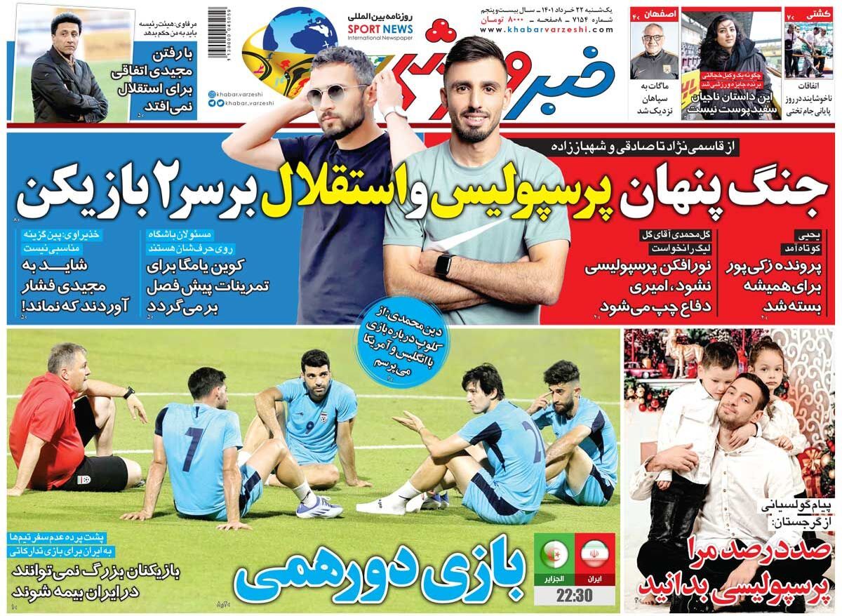 روزنامه های ورزشی یکشنبه ۲۲ خرداد ۱۴۰۱