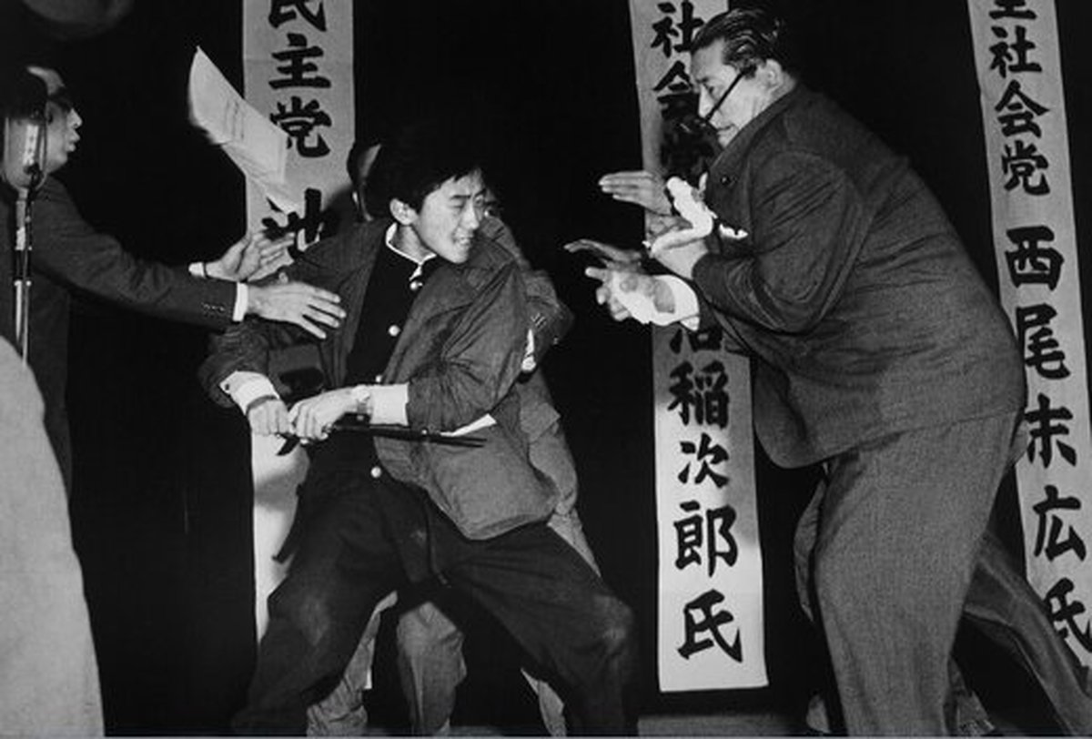 اوتایا یاماگوچی دانشجوی راستگرا، اینجیرو آسانوما رهبر حزب سوسیالیست را حین سخنرانی با شمشیر سامورایی به قتل رساند