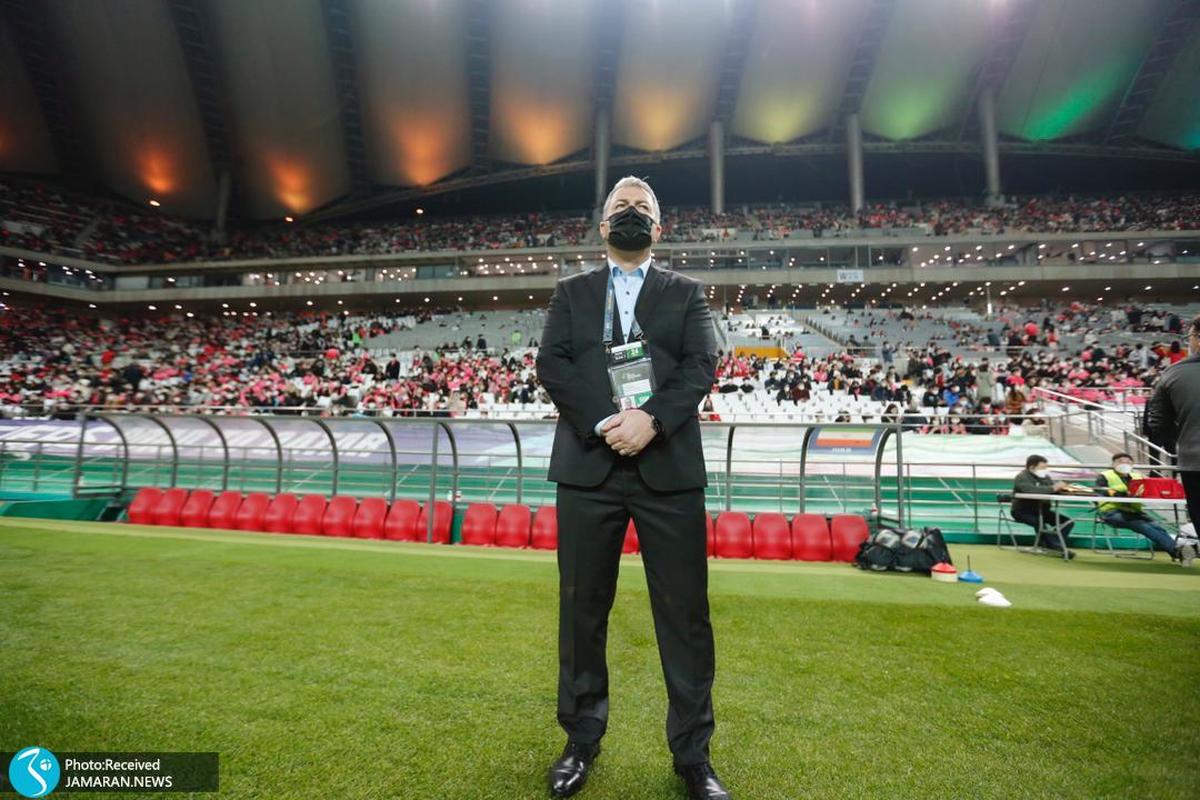 او در مورد حمایت مسئولان از اسکوچیچ تا همین چند شب پیش گفت:"هفته پیش فدراسیون گفت اسکوچیچ در جام جهانی سرمربی است، اما شما(فدراسیون) که برنامه ندارید و نمی توانید ثبات در گفتار داشته باشید؛ علت اصلی را عدم حضور فوتبالی های بزرگ می دانم و دخالت دیگر قسمت ها از بیرون فدراسیون. وقتی بازیکن فوتبال به یک اندازه ای قوی می شود که در مارکت قیمتش بالا می رود، این فضا را می بیند، این کارها را می کند. اینکه یک نفر از هیئت مدیره با یک بازیکن ارتباط می گیرد، کار احمقانه ای است."