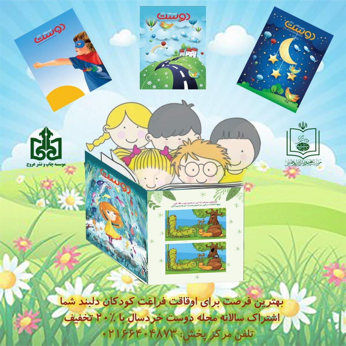 ماهنامه فرهنگی آموزشی خردسالان دوست شماره ۵۹۹ توسط مؤسسه چاپ و نشر عروج وابسته به مؤسسه تنظیم و نشر آثار امام خمینی(س) چاپ و روانه بازار نشر مجلات گردید.