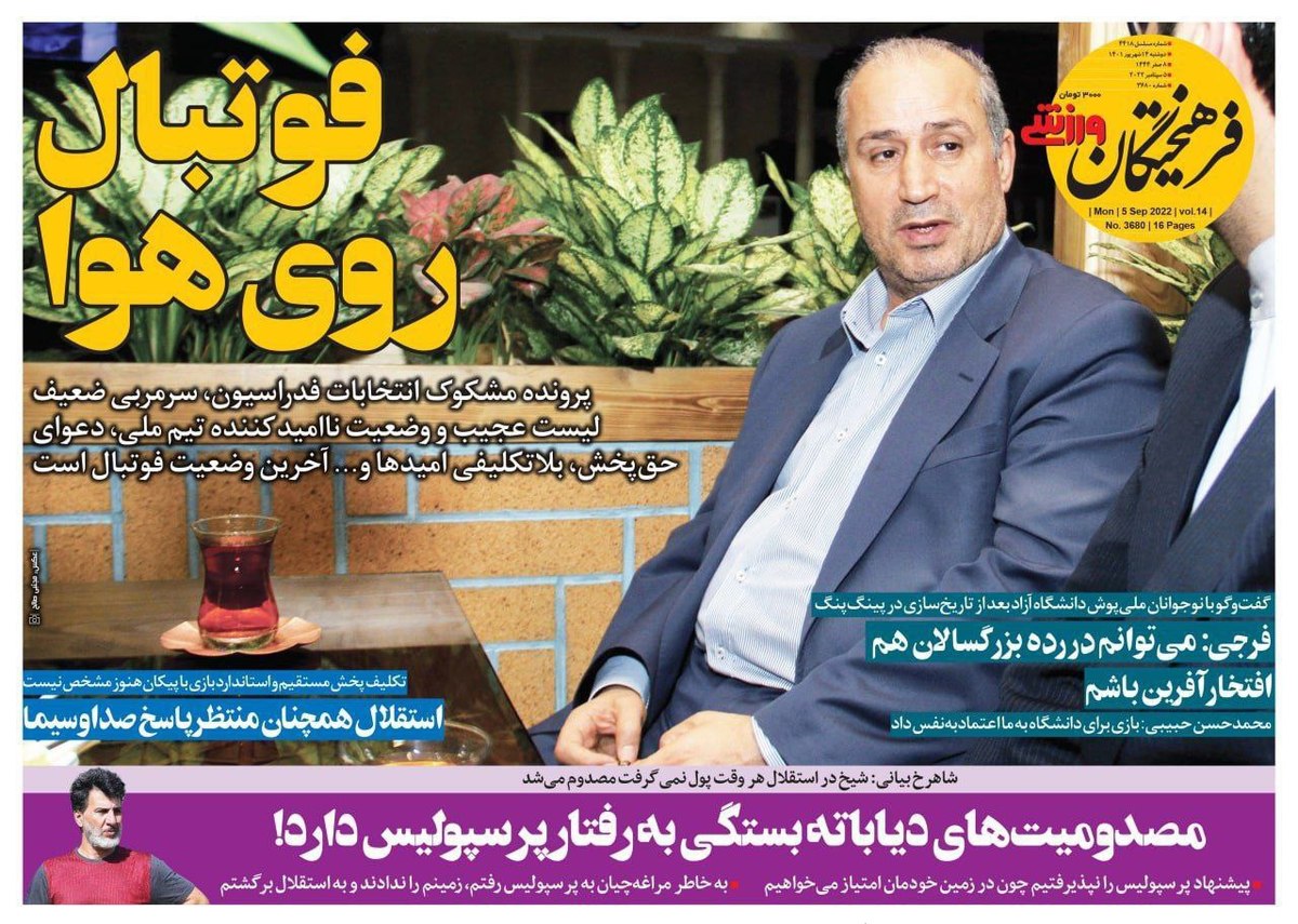 روزنامههای ورزشی دوشنبه ۱۴ شهریور ۱۴۰۱