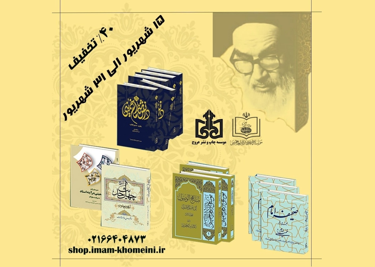 به مناسبت سی و چهارمین سالگرد تأسیس مؤسسه تنظیم و نشر آثار امام خمینی(س) کلیه کتاب ها و محصولات فرهنگی مؤسسه چاپ و نشر عروج با ۴۰ درصد تخفیف عرضه خواهد شد.