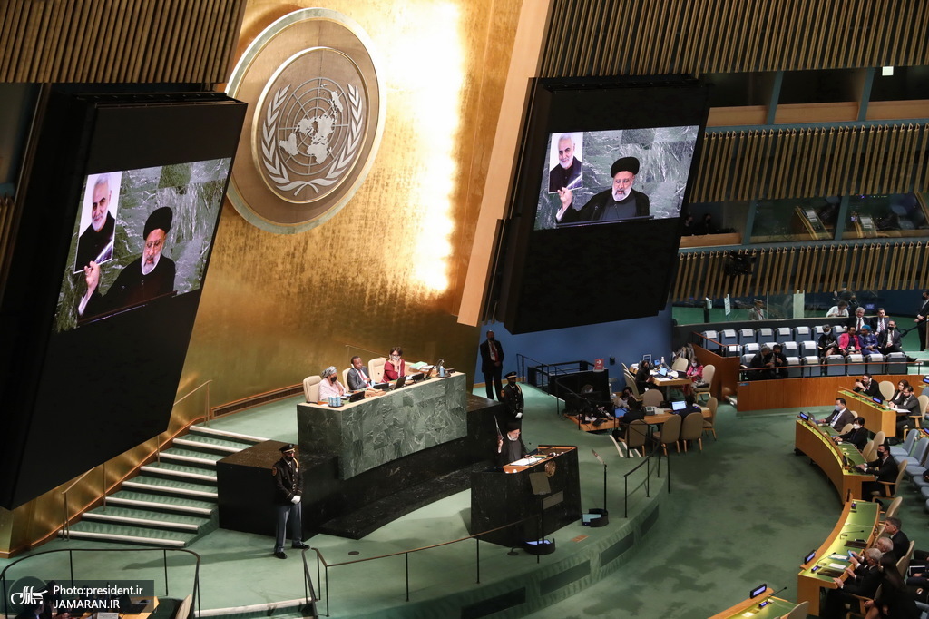 سید ابراهیم رئیسی رئیسجمهوری اسلامی ایران صبح امروز چهارشنبه به وقت محلی، در نطق خود در هفتاد و هفتمین اجلاس مجمع عمومی سازمان ملل متحد با اشاره به آسیبها و مخاطرات نظم کنونی و رو به زوال جهان، تلاشهای متراکم و پیوسته ملت ایران را برای شکلدهی به نظم و نظامی عادلانه دردنیا مورد توجه قرار داد و با برشمردن مصادیق متعددی از بیعدالتی و استاندارهای دوگانه آمریکا در قبال مسائلی همچون تروریسم و حقوق بشر در نقاط مختلف جهان از جمله در مواجهه با ایران، به سرفصلهای نقش برجسته و پیشرو جمهوری اسلامی ایران در ایستادگی مقابل سیاستهای زورگویانه و مداخلهجویانه از جمله مهار تروریسم دستساز آمریکا و ناکام کردن تغییر نقشه کشورهای منطقه به فرماندهی سردار شهید سپهبد سلیمانی پرداخت و تأکید کرد: رسیدگی عادلانه قضایی به جنایت رئیس جمهور سابق آمریکا را از طریق یک دادگاه عادلانه، دنبال خواهیم کرد.