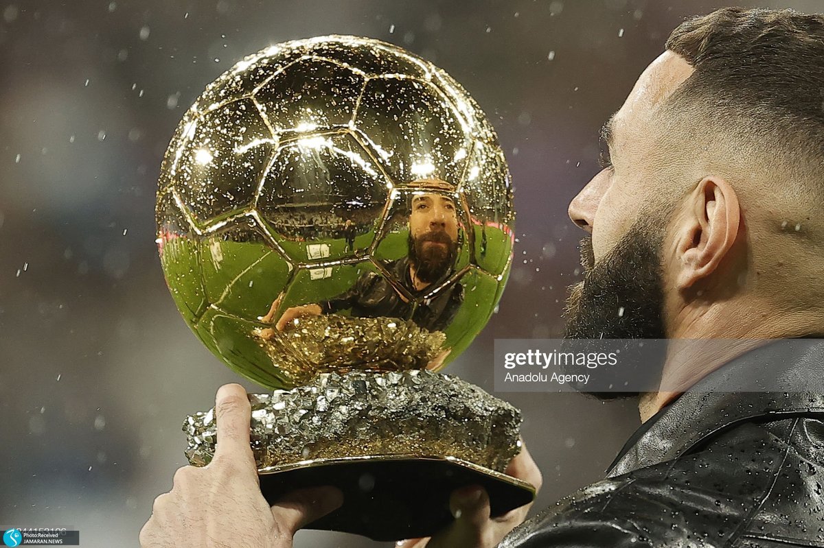 عکس| رونمایی از "توپ طلا"ی بنزما و "یاشین" کورتوا در باران سانتیاگوبرنابئو