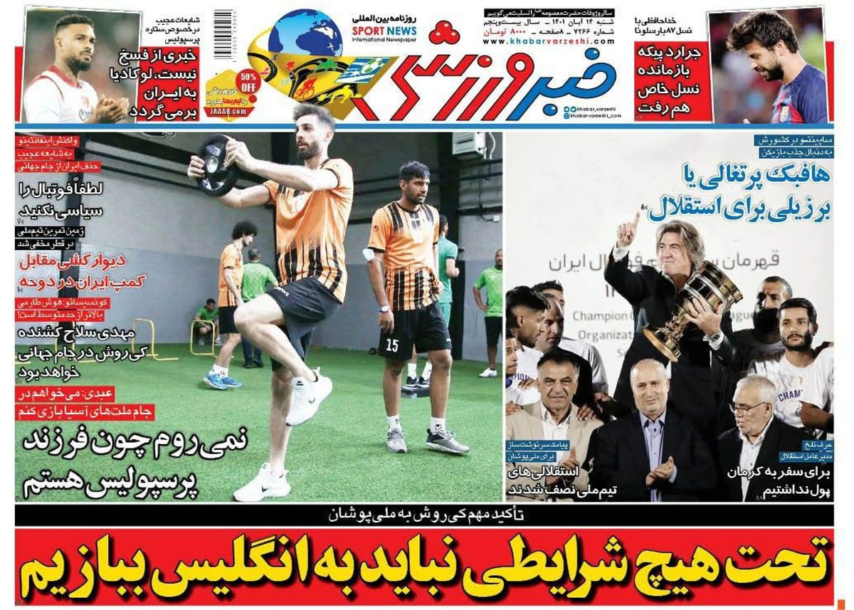 روزنامه های ورزشی شنبه ۱۴ آبان ۱۴۰۱