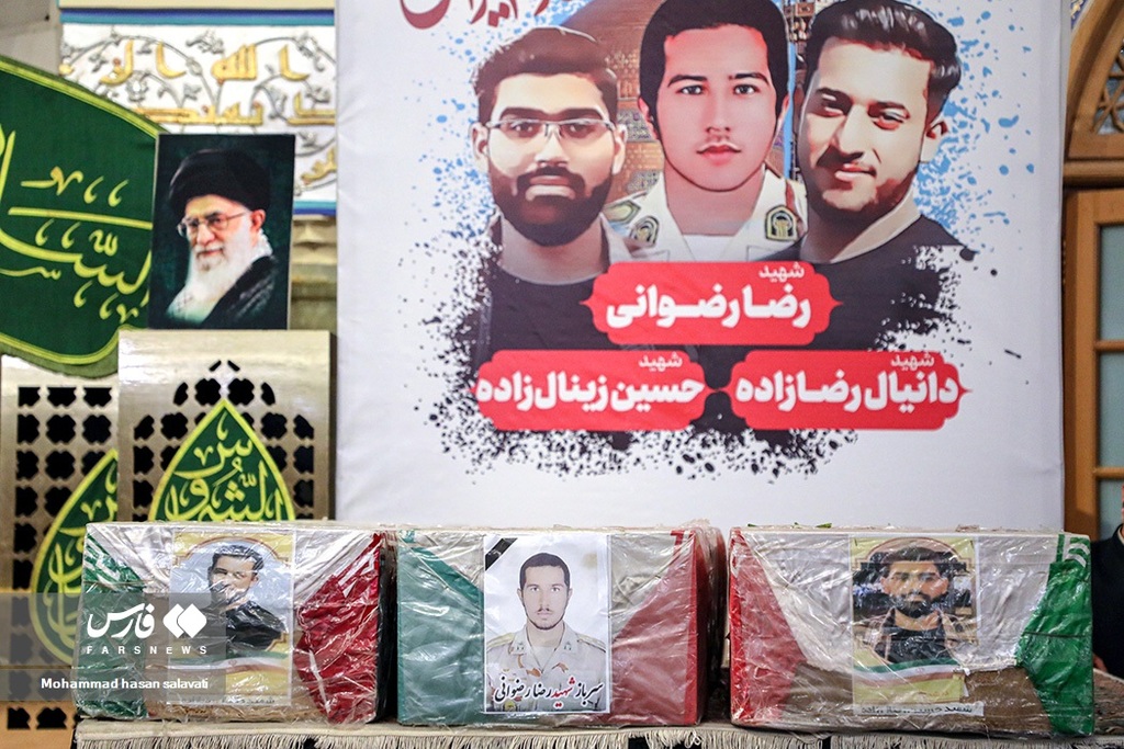 مراسم تشییع و بدرقه پیکر شهیدان بسیجی «حسین زینالزاده» و «دانیال رضازاده» و سرباز شهید مرزبانی «رضا رضوانی» که در مرز سراوان به شهادت رسیده است، با حضور باشکوه اقشار مختلف مردم در مشهد به سوی حرم مطهر رضوی برگزار شد.