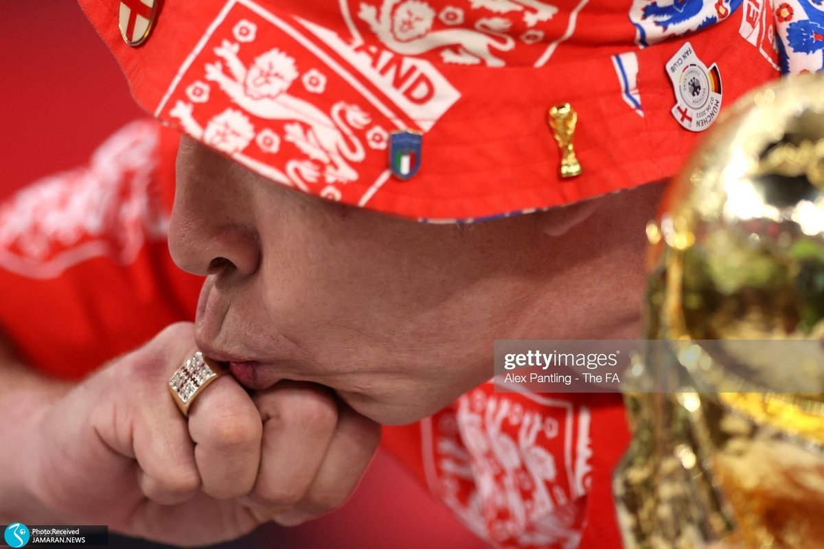 هوادار انگلیسی در جریان دیدار تیم ملی کشورش و ولز انگشتر خود را می بوسد