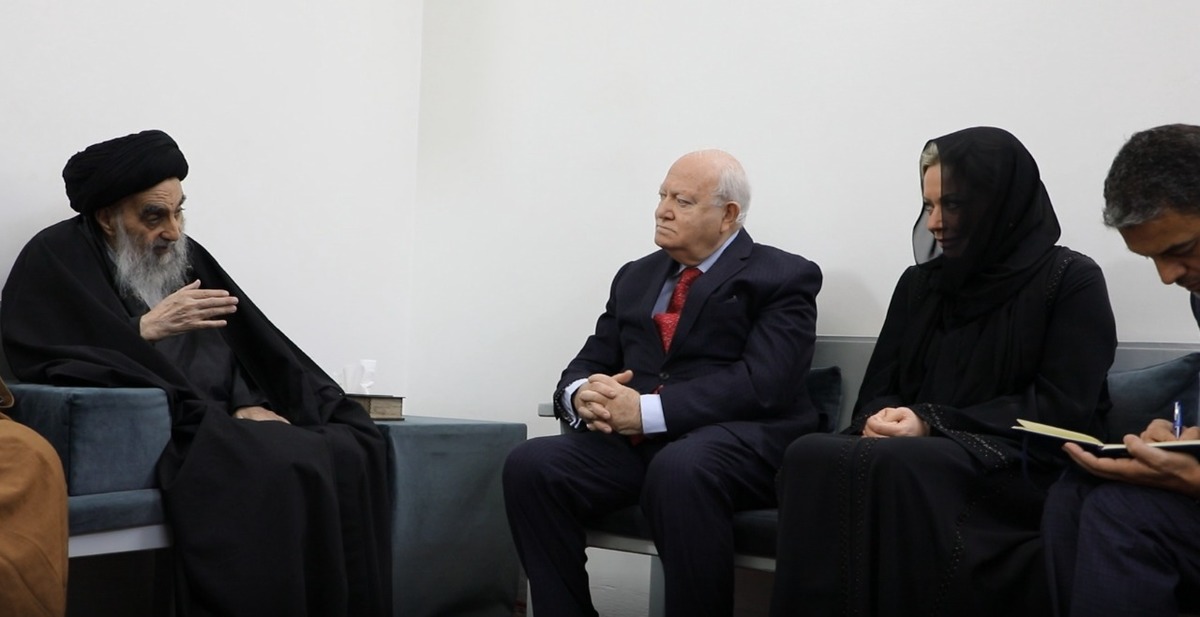 دیدار نماینده عالی سازمان ملل با آیتاللهالعظمی سیستانی/ تاکید آیتالله العظمی سیستانی بر حقوق و احترام متقابل بین پیروان ادیان و گرایش های مختلف فکری